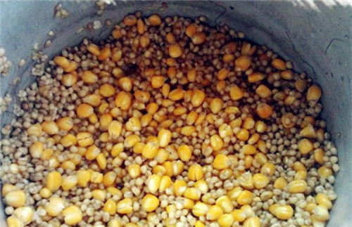 1、將主料老玉米粒用清水洗凈,視氣溫高低浸泡24——48小時(shí),中間應(yīng)經(jīng)常換水。